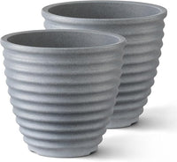 ARBORA 16" Ibiza Polyresin Indoor and Outdoor Planter with Stone Blend Concrete Gray Finish - Durable, Weatherproof, Lightweight, Large Plant Pot for Patio, Garden, Deck, Entryway - 2 Pack