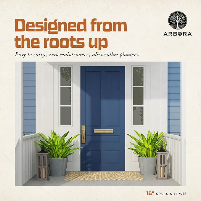 ARBORA 16" Monaco Square Polyresin Indoor and Outdoor Planter with Stone Blend Concrete Gray Finish - Durable, Weatherproof, Lightweight, Large Plant Pot for Patio, Garden, Deck, Entryway
