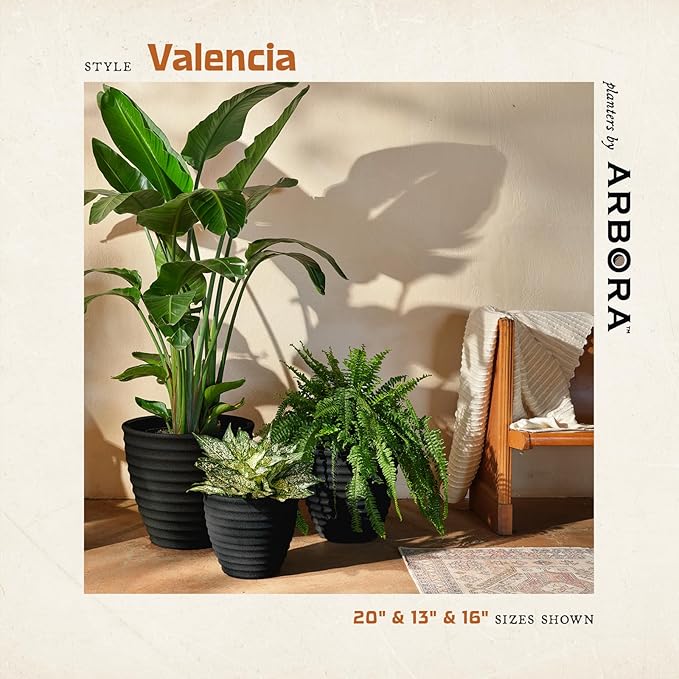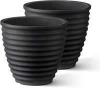 ARBORA 13" Ibiza Polyresin Indoor and Outdoor Planter with Classic Black Finish - Durable, Weatherproof, Lightweight, Large Plant Pot for Patio, Garden, Deck, Entryway - 2 Pack