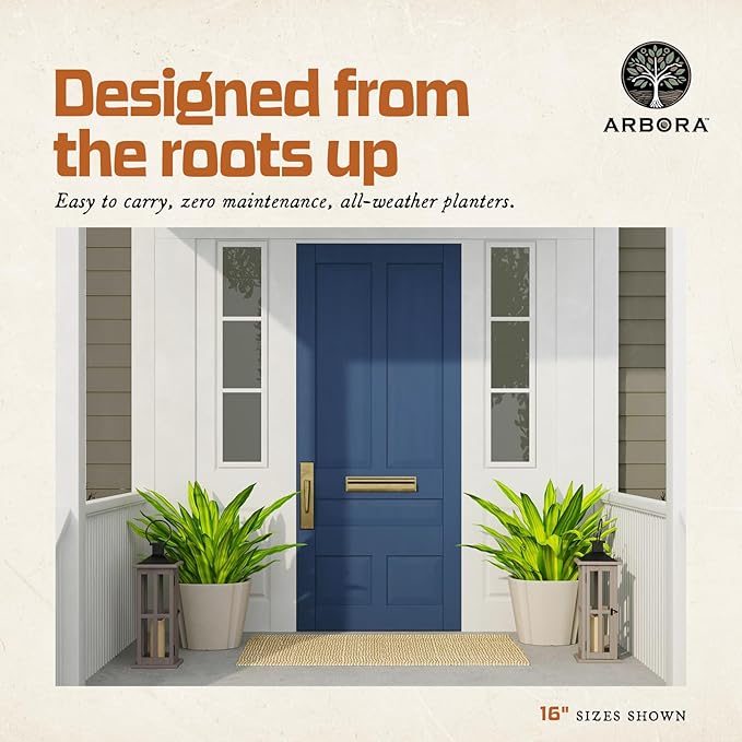 ARBORA 20" Monaco Square Polyresin Indoor and Outdoor Planter with Classic Cream Finish - Durable, Weatherproof, Lightweight, Large Plant Pot for Patio, Garden, Deck, Entryway
