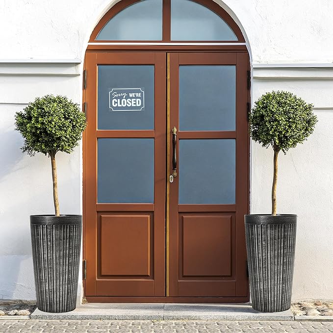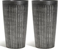 Worth Garden 22.5" H. Plastic Planters - Set of 2 Vintage Black Tall Conical Plant Pots for Indoor Outdoor Use - Decorative Lightweight Flower Pots for Front Porch, Patio, Deck - 12.5" Dia x 22.5" H