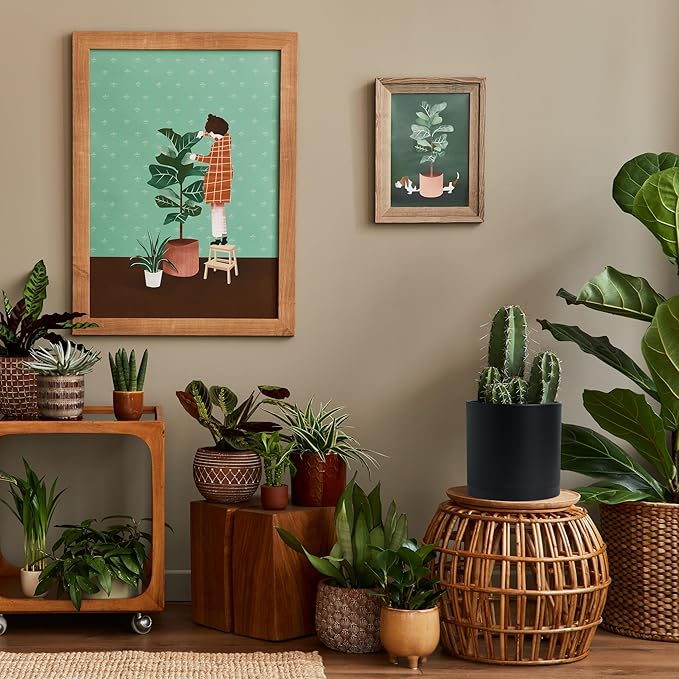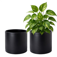 D'vine Dev 2 Pack 8 Inch Modern Plastic Plant Pots, Small Garden Planters for Plant with Drainage Holes and Saucers, Black Color, 74-Y-M-1