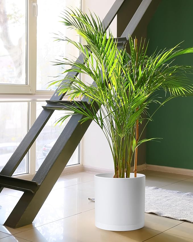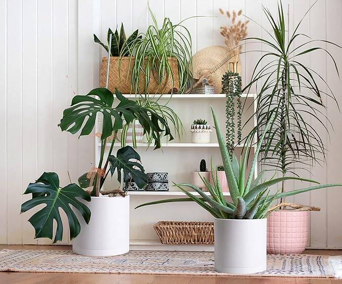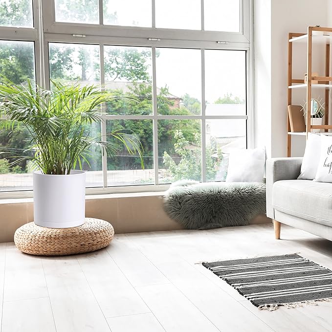D'vine Dev 2 Pack 12 Inch Modern Plastic Plant Pots, Small Garden Planters for Plant with Drainage Holes and Saucers, White Color, 74-Z-P-1