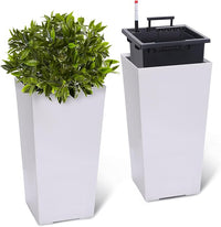 GAOMON 23" Tall Planters Set of 2, Planters for Outdoor&Indoor Plants, Modern Plant Pots with Drainage Holes&Water Level Monitor&Inner Bucket, Automatic Watering, Convenience Instill, White