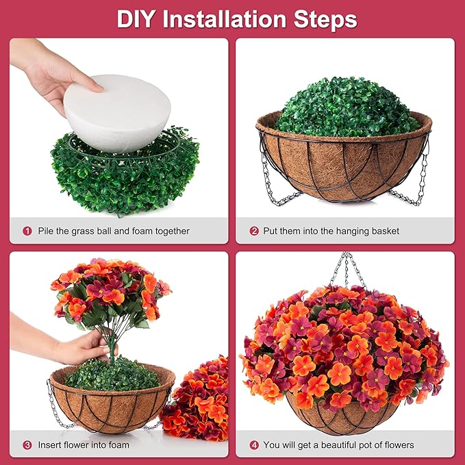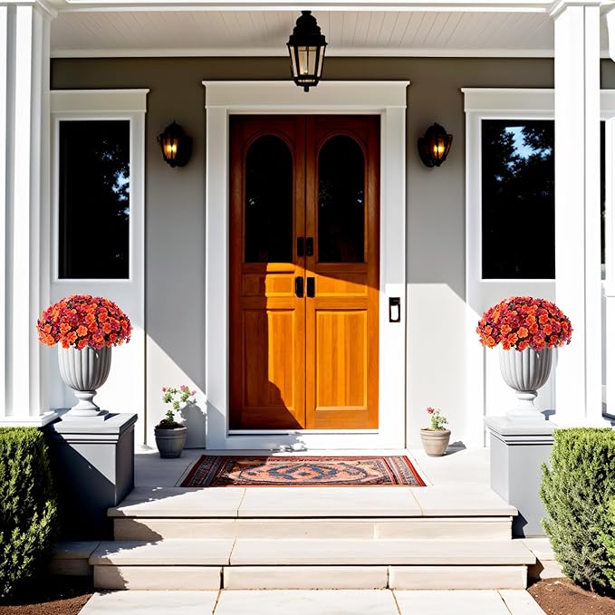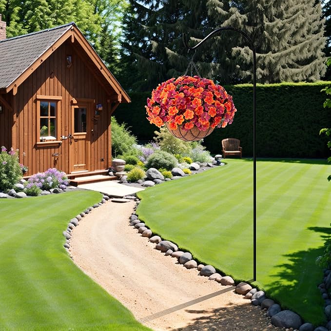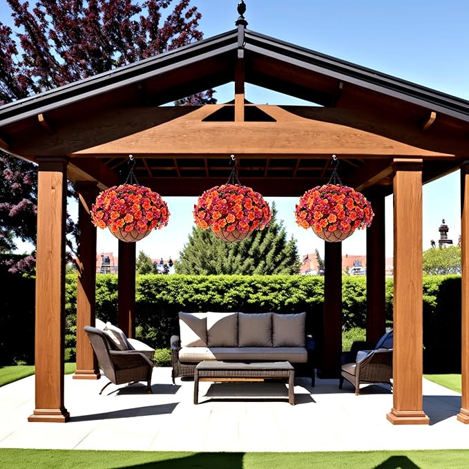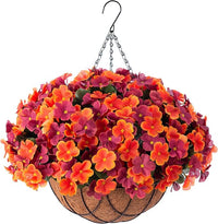 Fall Artificial Hanging Flowers with 12" Basket for Outdoor Decor, Fake Hydrangea UV Resistant Arrangements in Pot Planter Decor for Indoor Porch Garden Yard(Orange Brown)