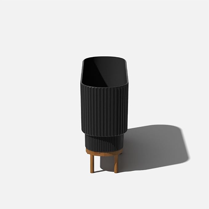 Veradek Demi Series Raised Long Planter for Indoor/Outdoor Use | Made from Plastic & Stone w/Wooden Stand | Modern Patio Décor for Flowers/Shrubs