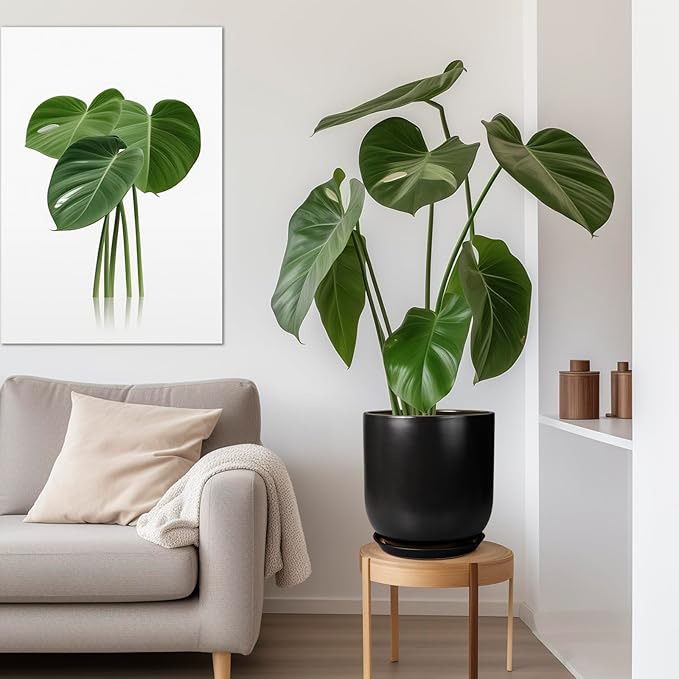 Ceramic Planter Pot - 12 Inch Large Plant Pot with Drainage Hole and Saucer Modern Flower Pot for Indoor Outdoor Plants Home Garden Decor Black
