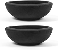 ARBORA 26" Santorini Bowl 2-Pack with Classic Black Finish - Polyresin Indoor and Outdoor Planters, Durable, Weatherproof, Lightweight, Large Plant Pots for Patio, Garden, Deck, Entryway