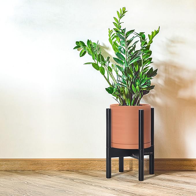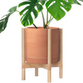 D'vine Dev Terracotta Planter with Ebony Stand - 8 Inch Modern Round Flower Pot with Wood Planter Holder, Terracotta, 55-B-M-5