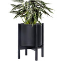 D'vine Dev Planter Pot with Stand - 12 Inch Plastic Cylinder Flower Pot with Wood Planter Holder for Indoor, Matte White Pot + Ebony Stand, 55-C-Q-1