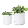 D'vine Dev 3.5 Inch & 4.7 Inch Ceramic Planter Pots for Plants with Drainage Hole and Saucer, X-Small Plant Pots Set, Teal, 94-G-XS-9