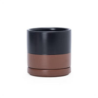 D'vine Dev 3.5 Inch Ceramic Planter Pot with Drainage Hole and Saucer, Indoor Cylinder Round Planter Pot, Black/Speckled Tan, 94-O-A-7