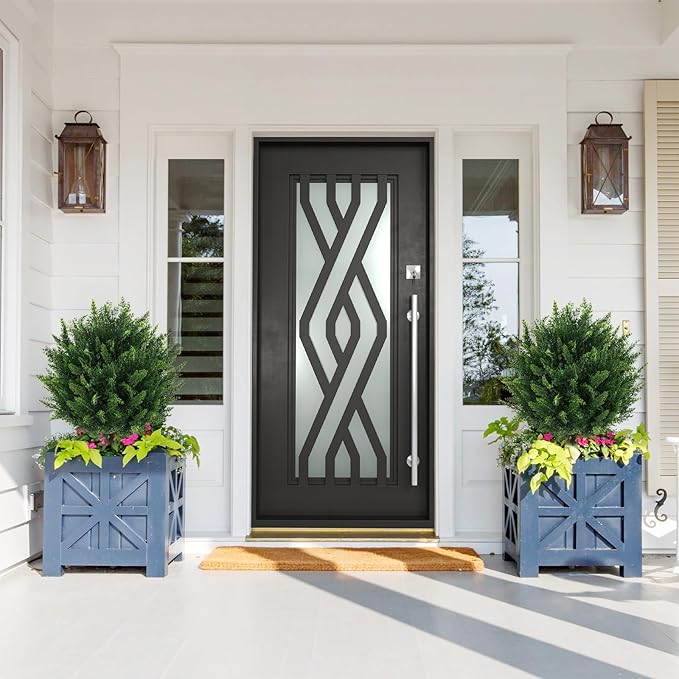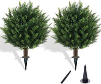 21" Artificial Cypress Topiary Outdoor Plants with Spike, 2 Pack Faux Cedar Bushes UV Resistant Fake Shrubs for Front Porch Décor