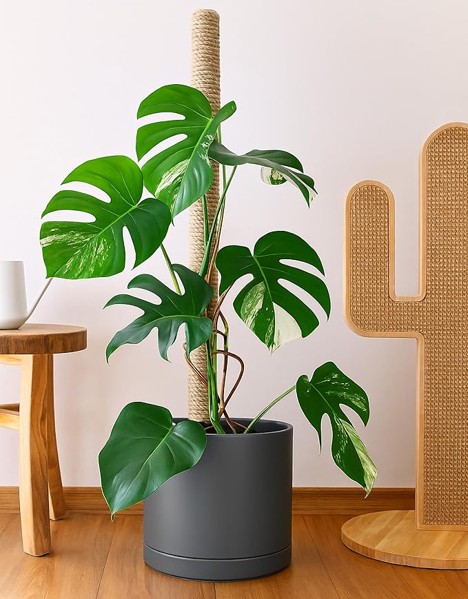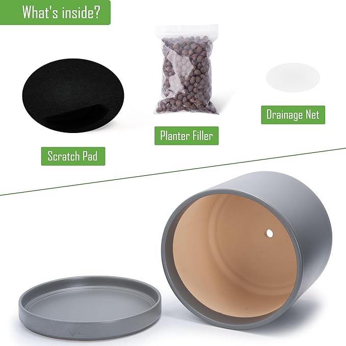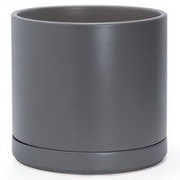 D'vine Dev 14 Inch Ceramic Planter Pot with Drainage Hole and Saucer, Indoor Cylinder Round Planter Pot, Speckled Grey, 94-O-G-3