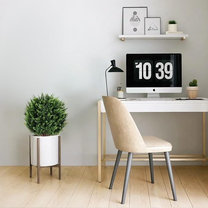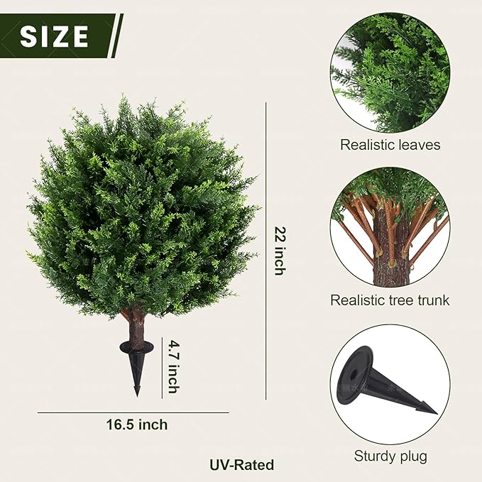 22''T Artificial Cedar Topiary Ball Tree 2 Pack, Artificial Bushes Fake Plants for Outdoor, Uv Resistance Rated Great for Outdoor, Indoor, Front Door Decor - Easy to Install.
