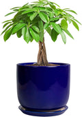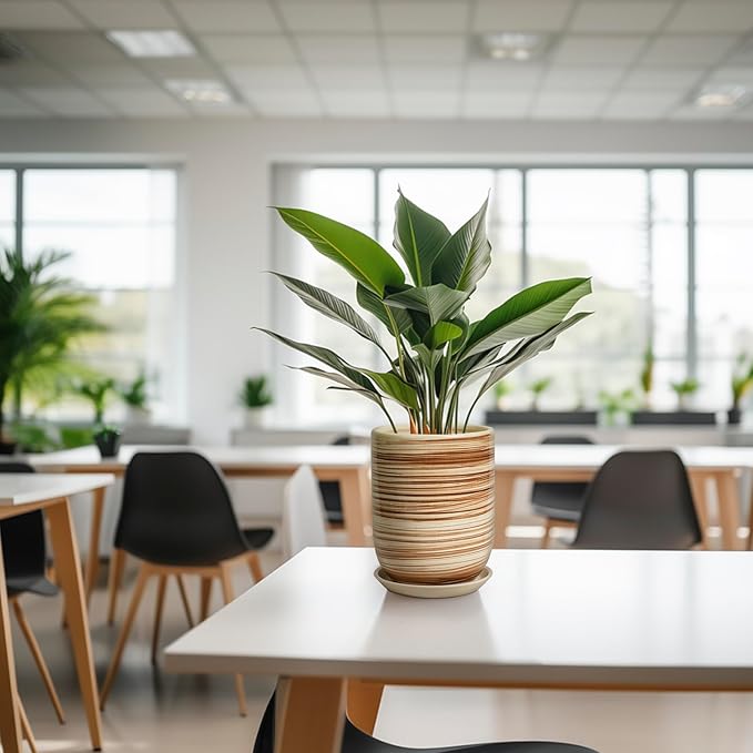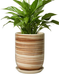 8 Inch Plant Pot, Ceramic Planter for Outdoor Plants, Large Plant Pot Indoor with Drainage Hole and Saucer, Modern Flower Pot for Home Garden Decor Yellow