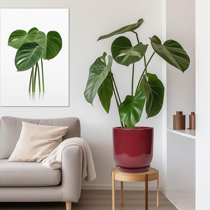 Ceramic Pots for Plants - 12 Inch Plant Pot Indoor with Drainage Hole and Saucer Large Planter Outdoor Flower Pot for Home Patio Office Decor Red