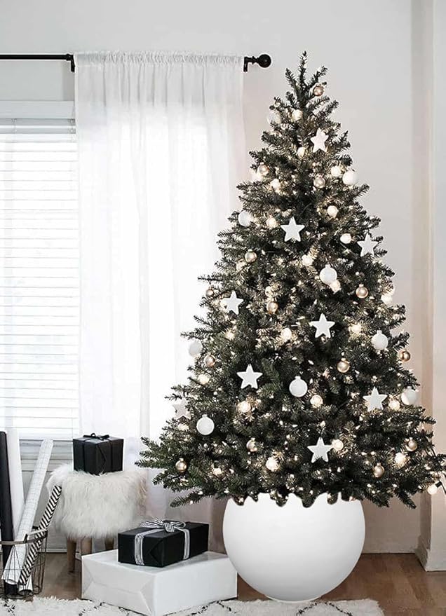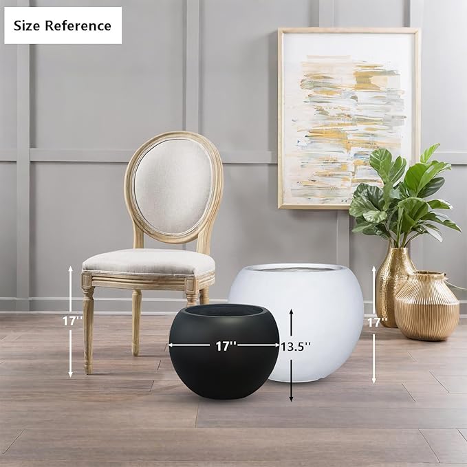 17 H x 21" Dia (15" Pot Opening) White Round Fiberstone Tall Planter with Drainage Hole, Indoor/Outdoor Large Plant