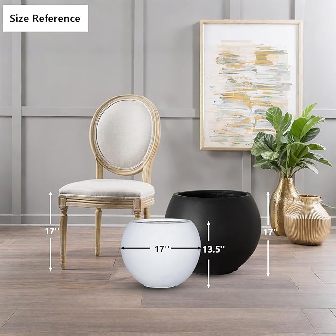17 H x 21" Dia (15" Pot Opening) Black Round Fiberstone Tall Planter with Drainage Hole, Indoor/Outdoor Large Plant