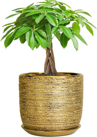 Ceramic Plant Pot 7 Inch - Ceramic Planter for Indoor Outdoor Plants, Round Modern Flower Pot with Drainage Hole and Saucer, Housewarming Gifts, House Patio Office Home Decor, Gold
