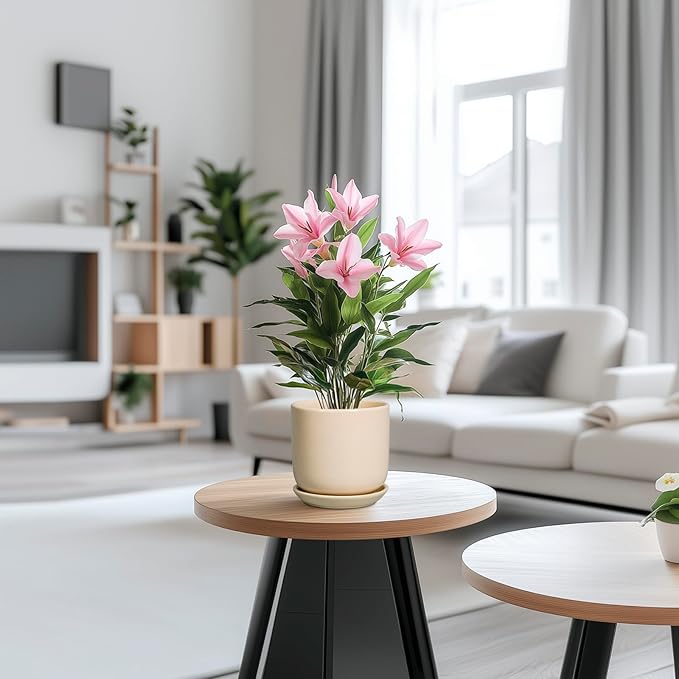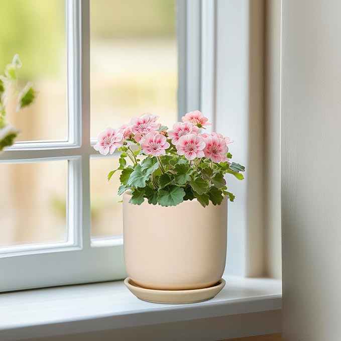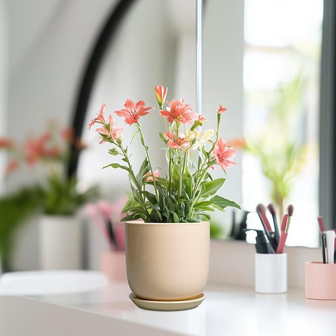 Ceramic Flower Pot 5 Inch - Round Succulent Planter for Indoor Plants with Drainage Hole and Saucer, Patio Room House Office Home Decor, Yellow