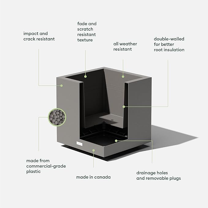 Veradek Block Series Cube Plastic Planter - Large Square Planter for Indoor or Outdoor Patio/Garden | Durable All-Weather Use with Drainage Holes | Modern Décor for Tall Plants, Trees, Flowers