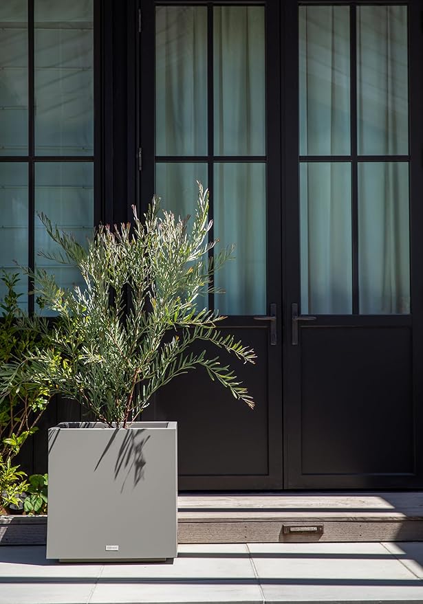 Veradek Block Series Cube Plastic Planter - Large Square Planter for Indoor or Outdoor Patio/Garden | Durable All-Weather Use with Drainage Holes | Modern Décor for Tall Plants, Trees, Flowers