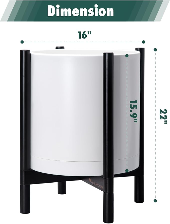 D'vine Dev Planter Pot with Stand - 16 Inch Plastic Cylinder Flower Pot with Wood Planter Holder for Indoor, Matte White Pot + Ebony Stand, 55-C-Z-1 Sale