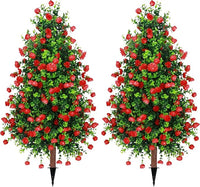 Sunnyglade 2 Packs 27.5" Artificial Rose Tree, Fake Rose Shrub Bushes Trees with Spike Faux Topiary Plants Tree for Indoor, Garden, Yard, Porch, Patio Decor