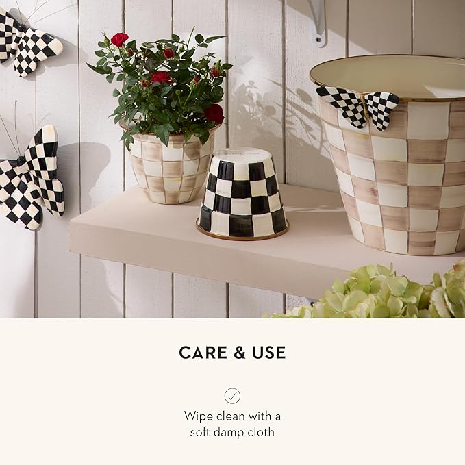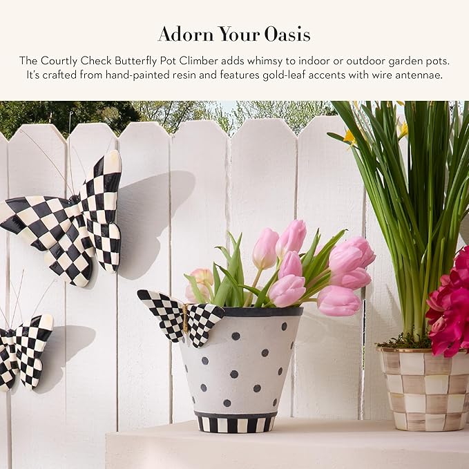 MACKENZIE-CHILDS Pot Climber, Decorative Flowerpot Hanger, Indoor and Outdoor Planter Hanging Decor, Courtly Check Butterfly