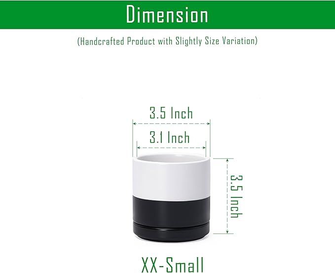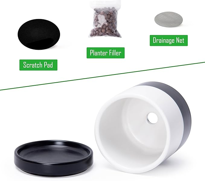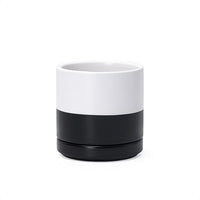 D'vine Dev 3.5 Inch Ceramic Planter Pot with Drainage Hole and Saucer, Indoor Cylinder Round Planter Pot, Layered Monochrome Black & White, 94-O-A-L