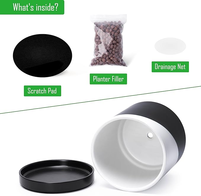 D'vine Dev 8.2 Inch Ceramic Planter Pot with Drainage Hole and Saucer, Indoor Cylinder Round Planter Pot, Oblique Monochrome Black and White, 94-O-D-K