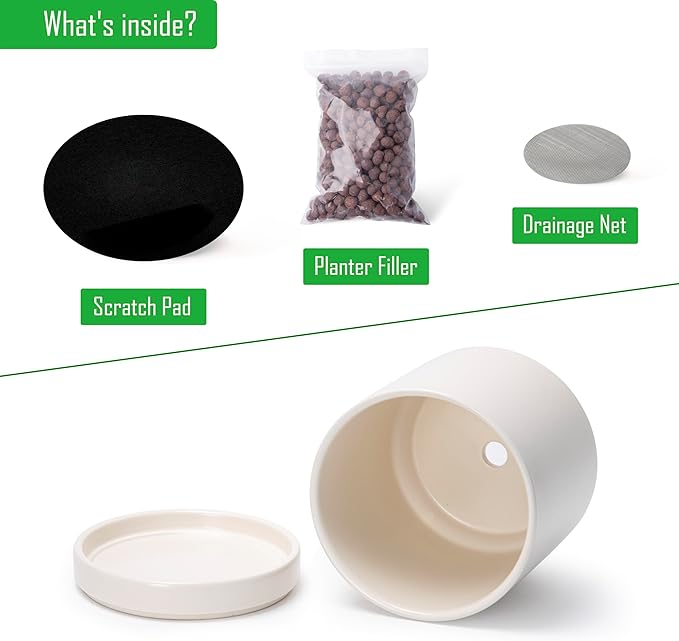 D'vine Dev 6 Inch Ceramic Planter Pot with Drainage Hole and Saucer, Indoor Cylinder Round Planter Pot, Oatmeal, 94-O-C-8