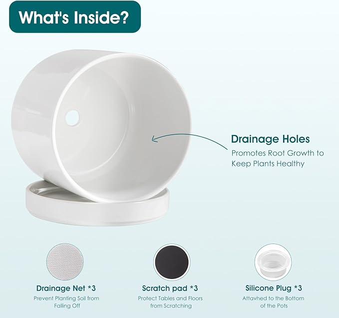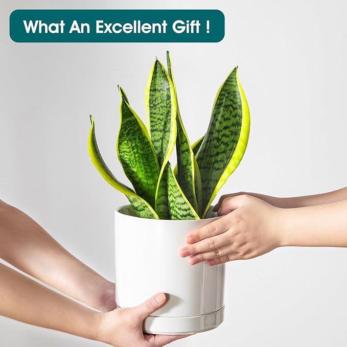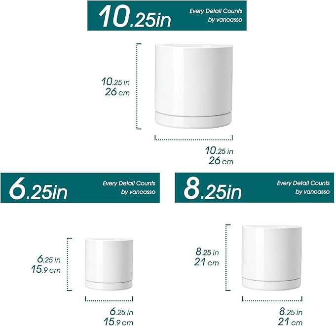 vancasso Ceramic Planters, Plant Pots for Indoor Plants, 6.25+8.25+10.25 Inch Ceramic Pots for Plants, Flower Pots with Drainage Holes, Planters Pot for Indoor House Plant, Set of 3, White