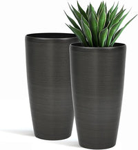 22.8" Large Tall Pot Planters, Set of 2 Modern Flower Pots with Handmade Brushed Metal Finish, Weather-Resistant for Indoor/Outdoor Year-Round Use