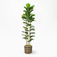 Artificial Fiddle Leaf Fig Tree Indoor with Woven Basket - 5ft Tall Fake Tree with Real-Wood Trunk,Faux Plants for Living Rooms, Offices, Kitchens & Outdoor Spaces (Round Basket)