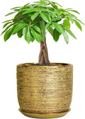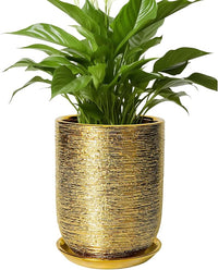 Indoor Plant Pot 8 Inch - Ceramic Planter for Indoor Outdoor Flowers, Round Modern Flower Pot with Drainage Hole and Saucer, Gifts for Plants Lovers, Garden Room Decor, Gold
