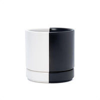 D'vine Dev 4.7 Inch Ceramic Planter Pot with Drainage Hole and Saucer, Indoor Cylinder Round Planter Pot, Split Monochrome Black & White, 94-O-B-0