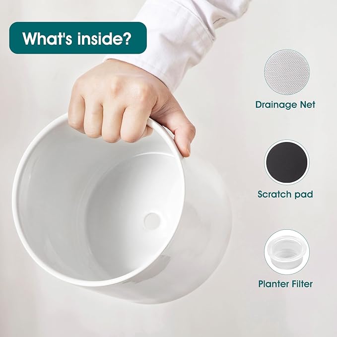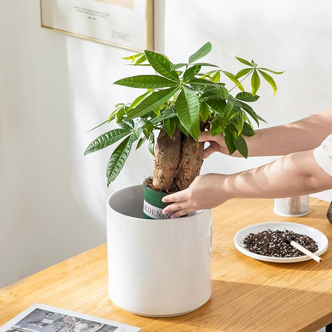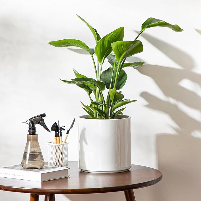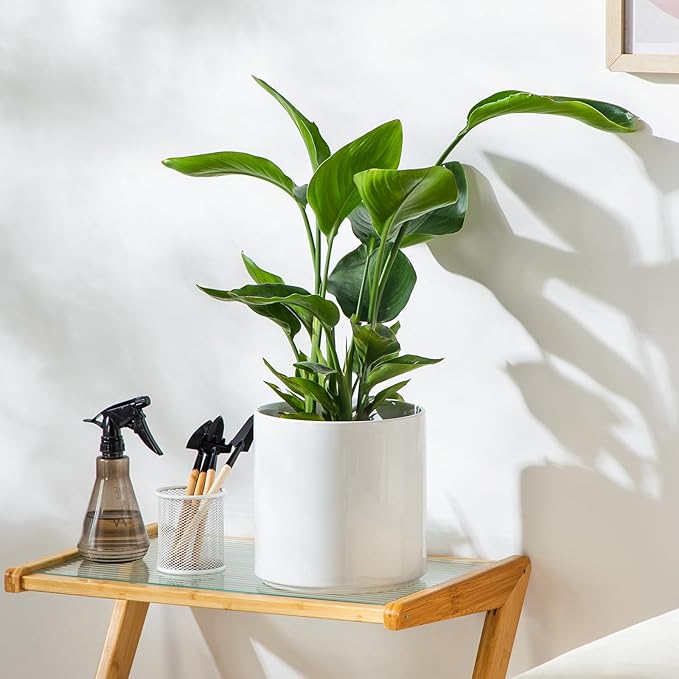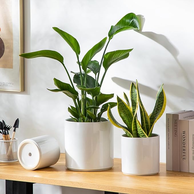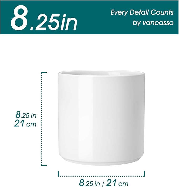 vancasso 8 Inch Ceramic Pot for Plants, Round Outdoor Indoor Planter Pots with Drainage Holes, White