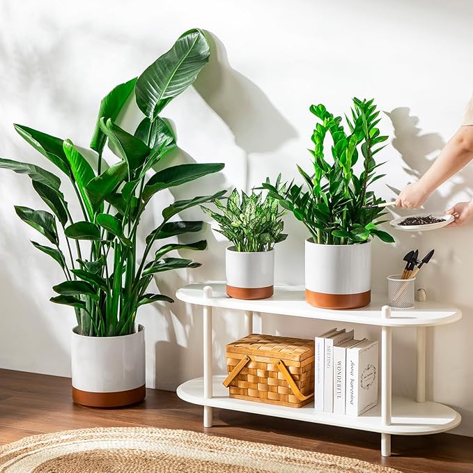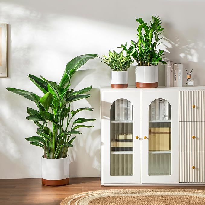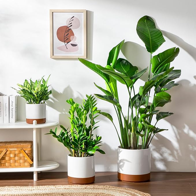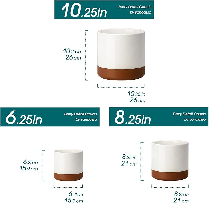 vancasso 6"+8"+10" Ceramic Pot for Plants, Large Outdoor Indoor Planter Pots with Drainage Holes, Set of 3, Khaki