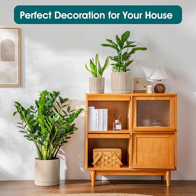 vancasso Ceramic Planters, Plant Pots for Indoor Plants, 6.25+8.25+10.25 Inch Ceramic Pots for Plants, Flower Pots with Drainage Holes (Gray, 6.25+8.25+10.25 Inch)