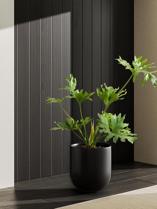 LE TAUCI 10 Inch Plant Pot, Ceramic Pots for Plants with Drainage Hole and Rubber Plug, Plant Pots Indoor for Olive Tree, Cylinder Planter Pot for Home Patio Office, Black