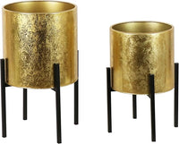 ARNIS Modern Plant Pots, Set of 2 Large Planters with Stand, Decorative Planters, Metal Pots with Drainage Holes for Living Room, Office, Garden or Balcony, 10.5 &12.55 Inch, Gold