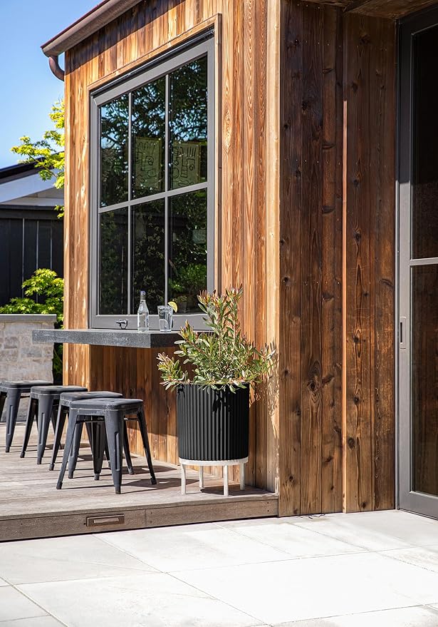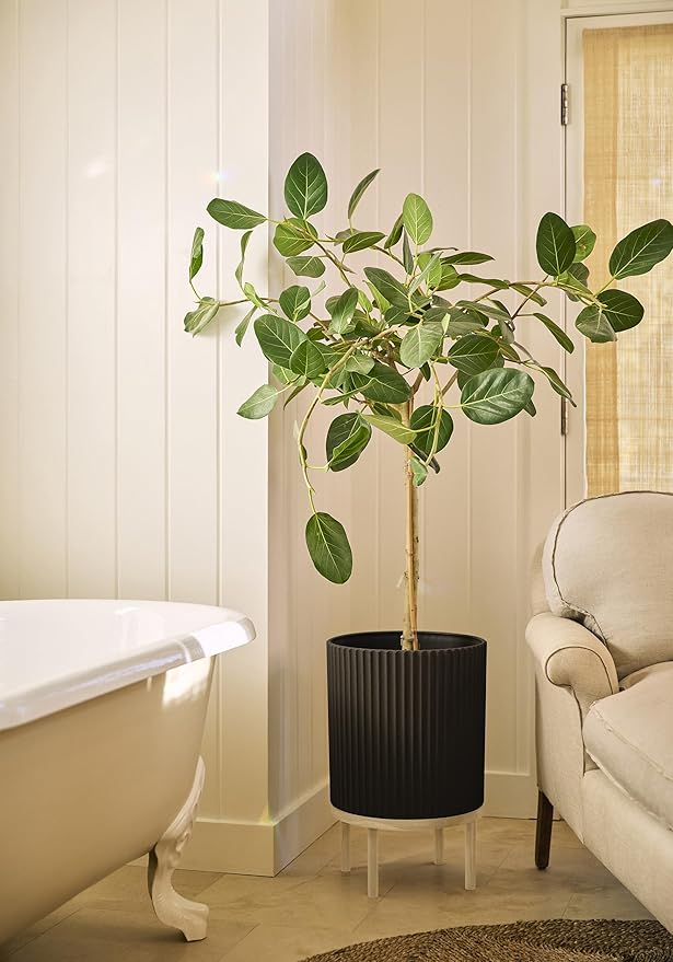 Veradek Demi Series Round Planter w/Stand for Porch/Patio | Durable Plastic-Stone Composite & Wooden Stand | Modern Décor for Tall Plants, Flowers Sale