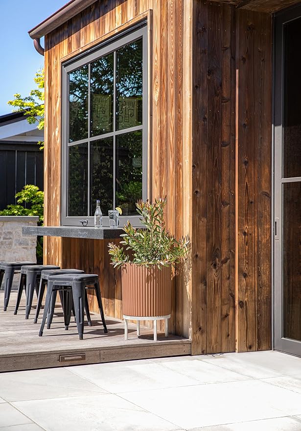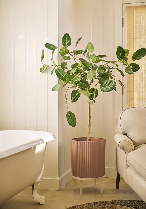 Veradek Demi Series Round Planter w/Stand for Porch/Patio | Durable Plastic-Stone Composite & Wooden Stand | Modern Décor for Tall Plants, Flowers Sale