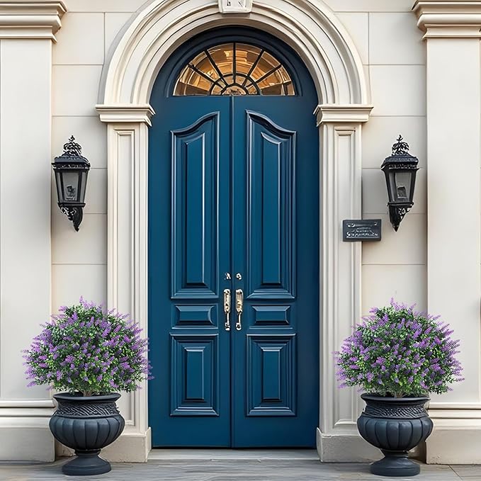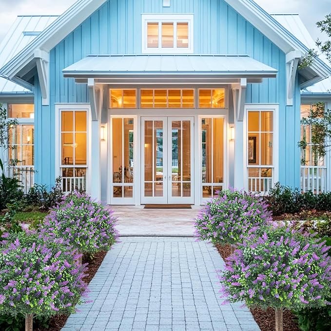 Set of 2 Pack Large Artificial Plants Lavender Topiary Ball Tree, 24.8" Tall Outdoor UV Resistant Simulated Bushes with Ground Spike, Faux Lavender Shrubs for Indoor, Front Porch, Home Garden