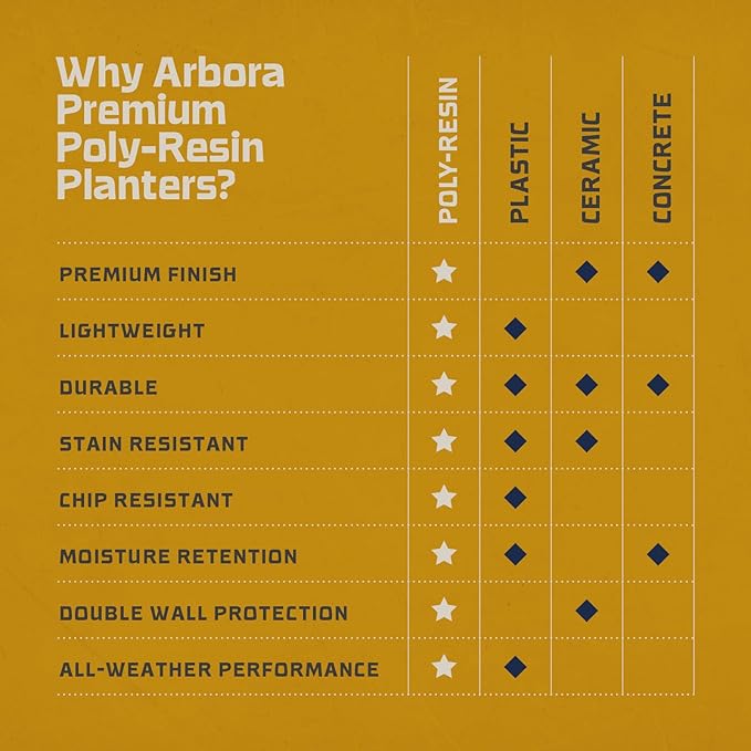 ARBORA 16" Mykonos Square Polyresin Indoor and Outdoor Planter with Classic Cream Finish - Durable, Weatherproof, Lightweight, Large Plant Pot for Patio, Garden, Deck, Entryway