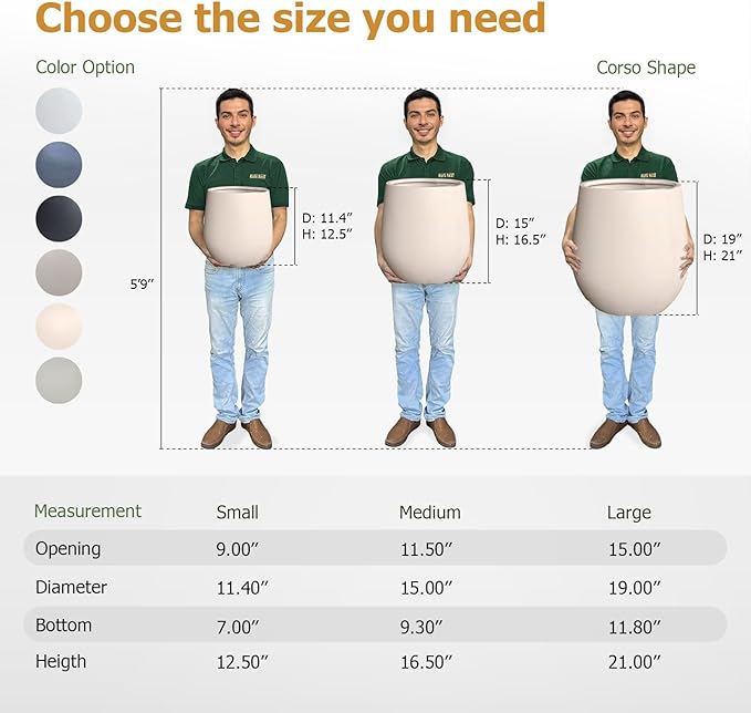 21" H x 19" D Corso Fiberstone Round Tapered Planter with Drainage Hole, Smooth Finishes, Weather Resistant for Indoor and Outdoor Use (Kilim Beige)