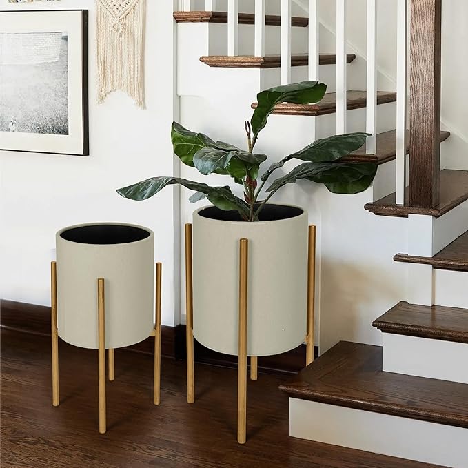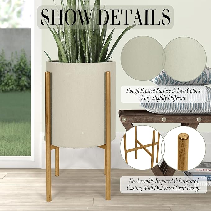 Oakrain Plants Pots with Stand, Set of 2 Planters for Indoor Plants, Modern Decorative Metal Flower Pots for Living Room, Garden, Balcony, 10"&12", Cement Gray Frosted