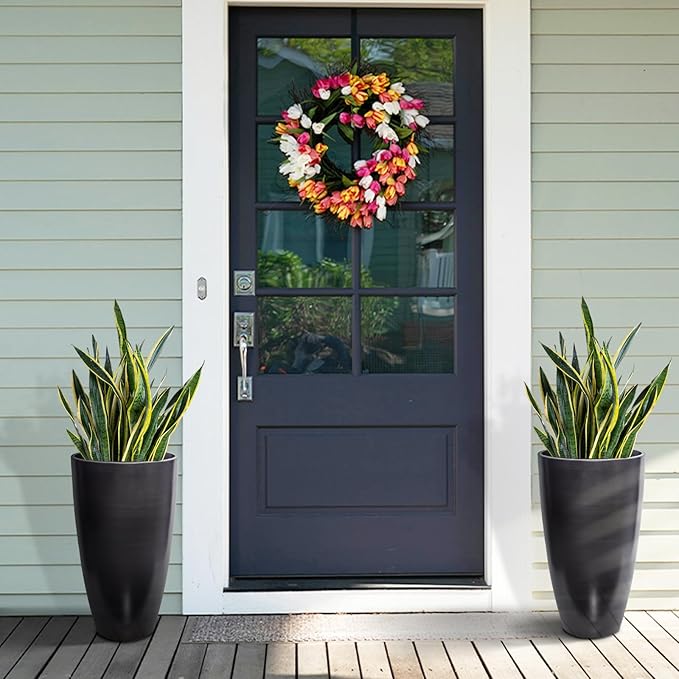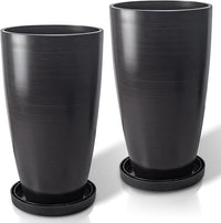 ZMTECH 21 Inch Tall Outdoor Planters Set of 2 Round Tall Plant Pots for Outdoor/Indoor with Shelf Inset, Dark Brown Glossy Smooth Finish - Large Plastic Pots with Drainage Holes for Front Porch Patio